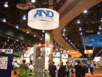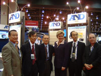 Out of the Japanese companies present, only A&D and the other one had the honor of receiving Jennifer M. Granholm, Governor of the State of Michigan, as a guest at our booth. It was aired on local TV and our management (Messrs Furukawa, Eto and Koyama) was interviewed by a local radio station, too. |