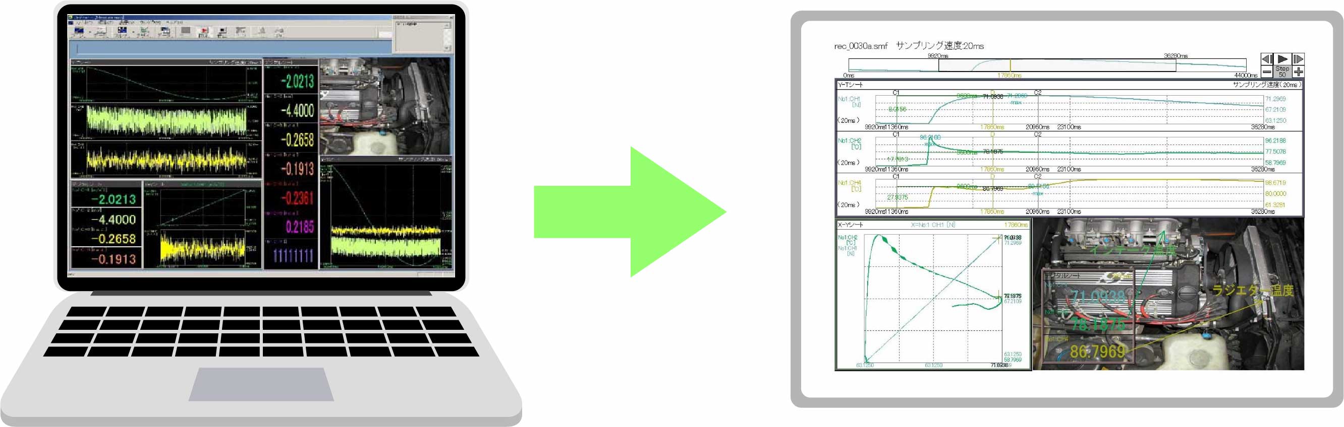 Multiple measured data files can be replayed simultaneously for data comparison. Also, replayed data can be used for various calculations.