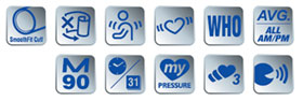 | Fuzzy logic inflation Easy, one-button operation For all UA-1000 models Personalized optimal inflation and pulse detection during inflation. Just press START to take the measurement. |