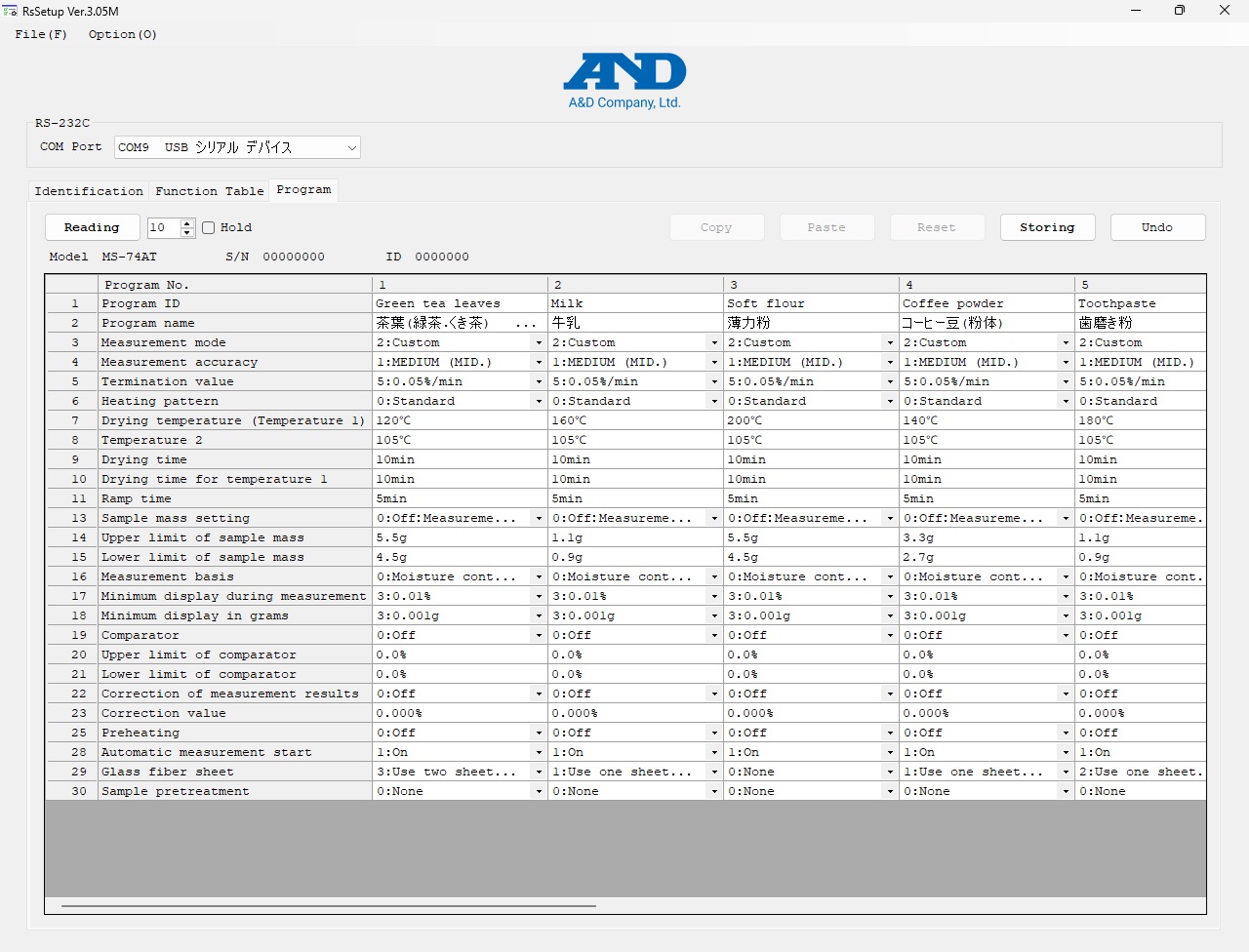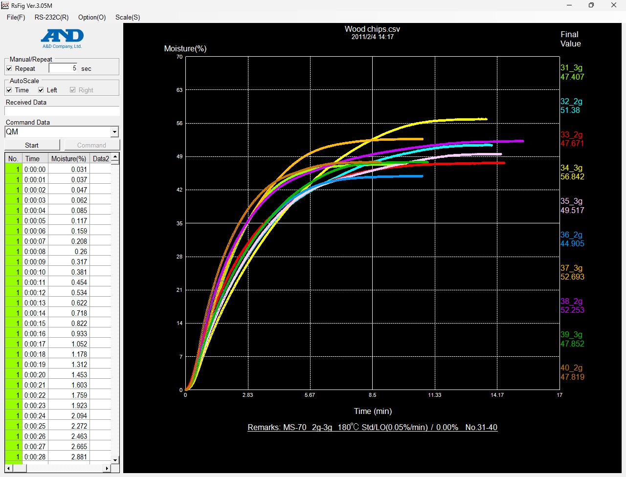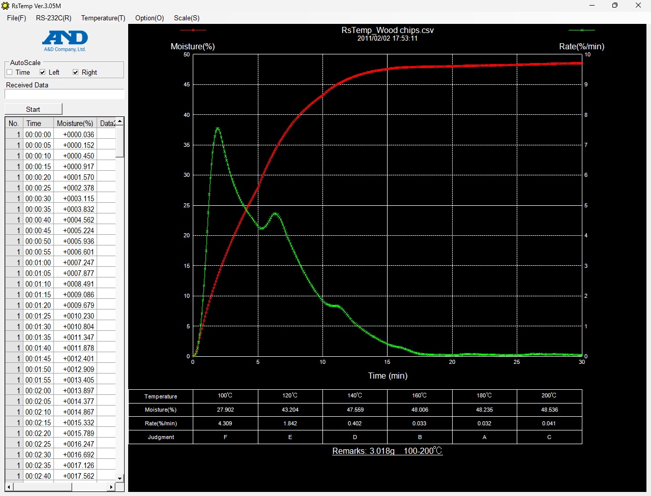 WinCT-Moisture (Dedicated PC software for A&D's moisture analyzers) | |||||||||||||||||||||