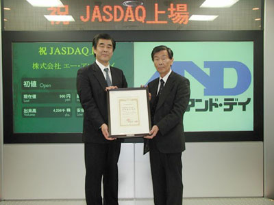 A&D Corporation became a publicly listed company in the Japanese JASDAQ market on April 10, 2003. This achievement would not have been possible without the outstanding performance of our agents.